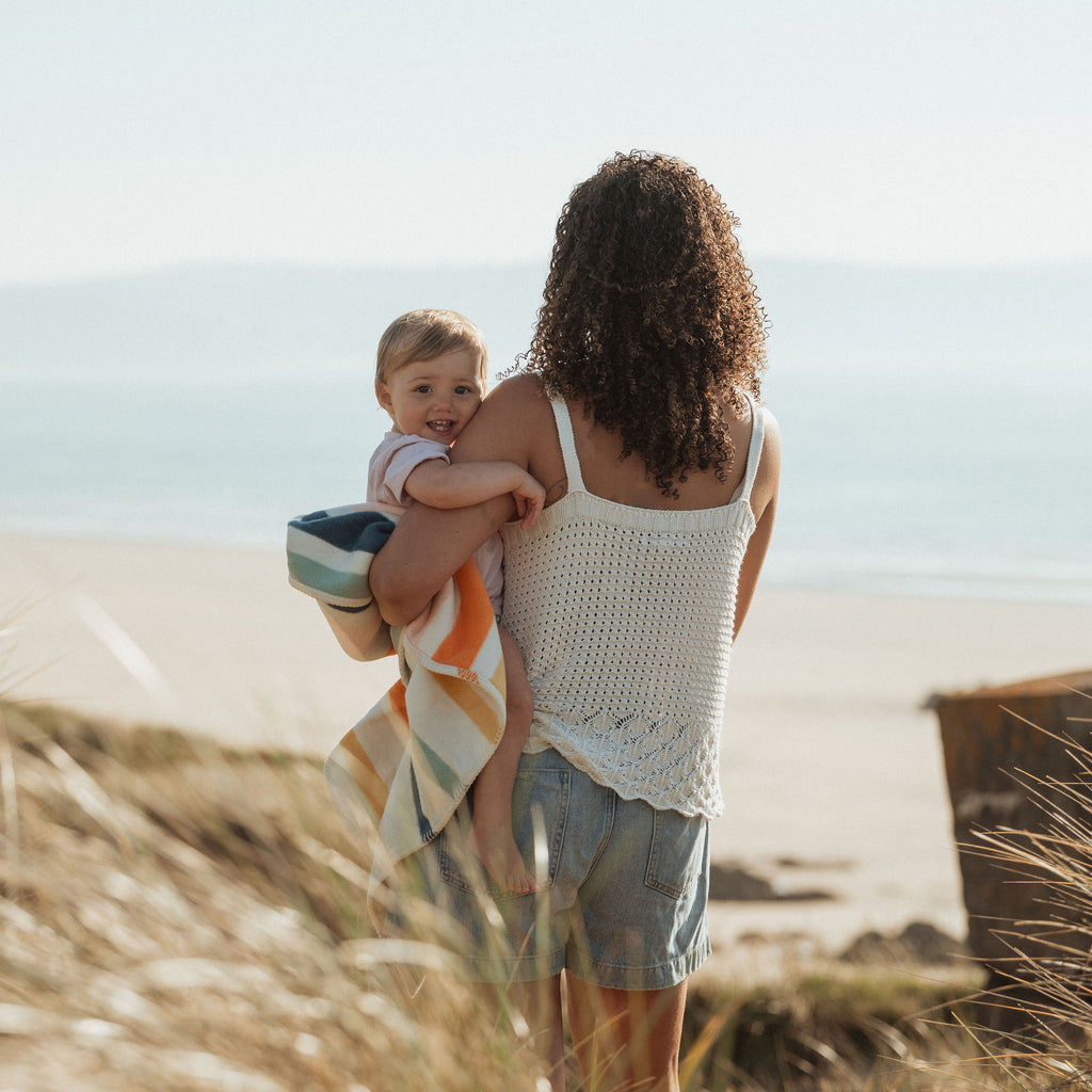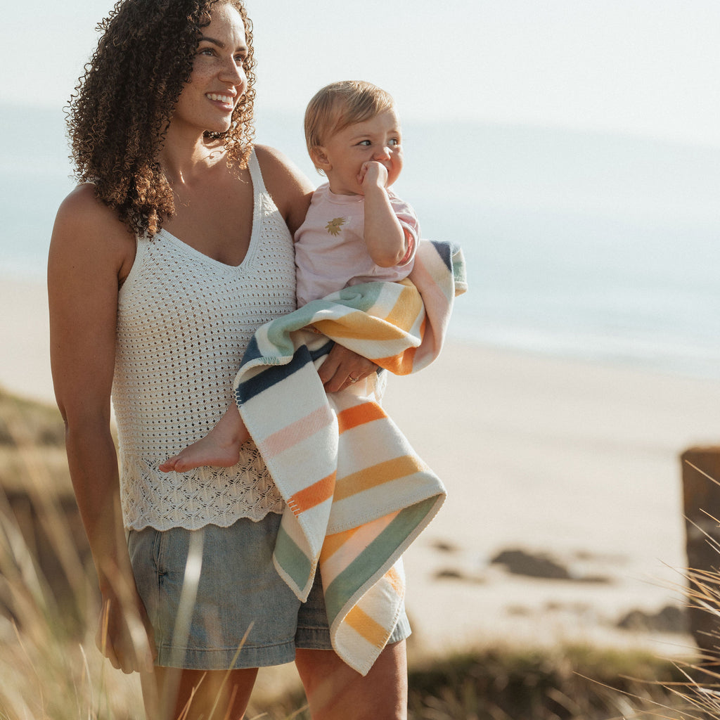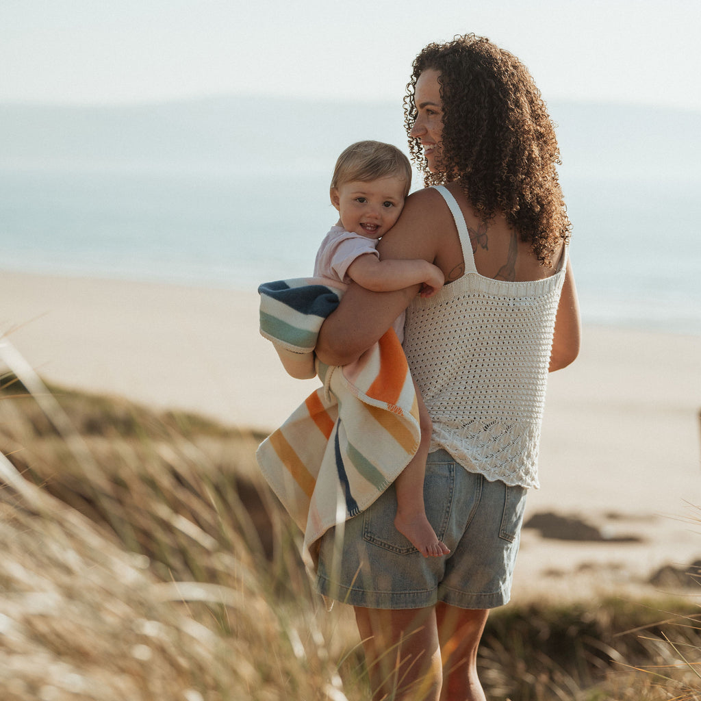 Wrap your baby in love and sustainability with our Seakind Stripe Recycled Cotton Baby Blanket. Made in the UK with recycled cotton, this blanket provides comfort while also reducing your environmental impact. Perfect for keeping your little one warm and happy.