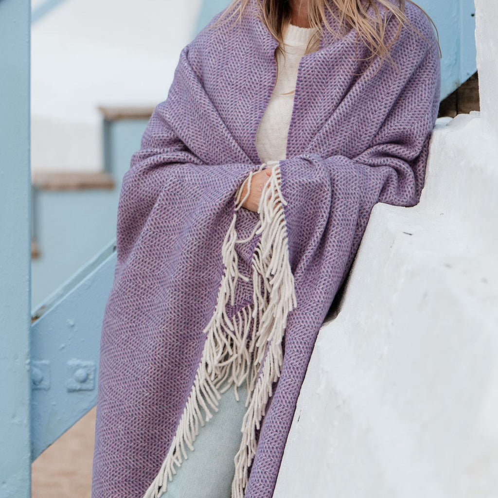 Wrap yourself in luxury with our Sea-Lavender Cashmere Merino Blanket. Made from a blend of cashmere and merino, this blanket is incredibly soft and cosy. Perfect for snuggling up on chilly nights or simply adding a touch of elegance to your home. Experience the ultimate comfort and style with our blanket!