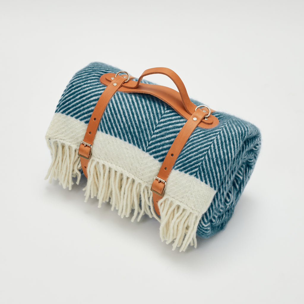 Elegant yet practical, durable yet irresistibly cosy, our sailor blue herringbone wool blanket is the perfect solution for picnics throughout the year. From crisp, cool winter mornings sipping hot chocolate on sheltered Cornish beaches to dreamy summer afternoons on sprawling moors to romantic evenings stargazing with a bottle of wine, every moment is maximised. Complete with a 100% wool body, waterproof polyester belly and attractive handle; style, beauty and practicality are seamlessly combined.