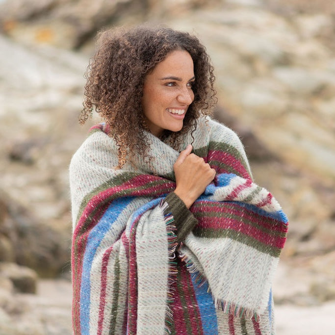 A winter comforter and summer essential, our random recycled wool blankets are as perfect for wrapping up against a Cornish sea breeze as snuggling up by the fire. Lovingly crafted from recycled wool in Britain, each blanket is completely bespoke and boasts a unique colour medley just for you. Easy to look after and hard to be without, this effortlessly stylish blanket is meant for moments and made to last.