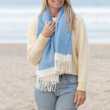 Meet the Snug Scarf - a shorter, cosier take on the classic wool scarf. Perfect for everyday layering, it brings the same comfort as our blankets. Dusk Blue is mellow and calming, inspired by twilight over the coast, complementing our blankets with serene style.