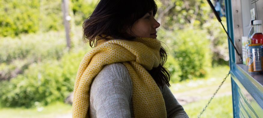 Our shorter wool scarf designed for simple, everyday warmth. Woven in soft herringbone wool, in colours to match our blankets.