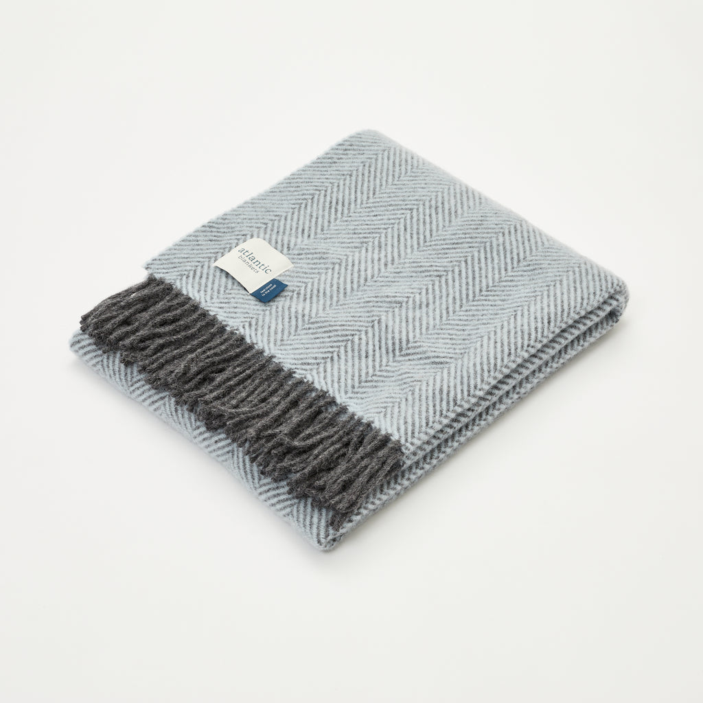 Harbour Mist Herringbone Wool Blanket