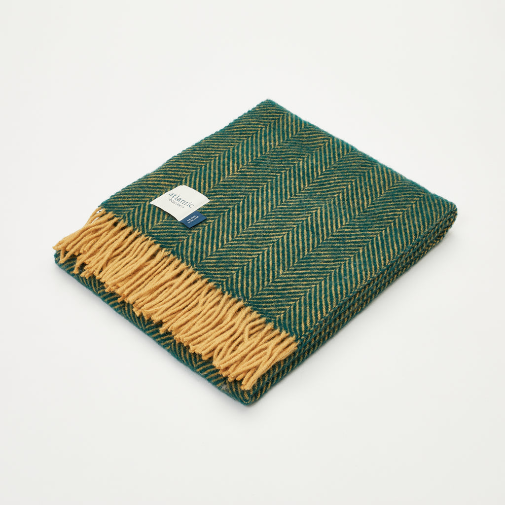 Sea Green Herringbone Wool Blanket