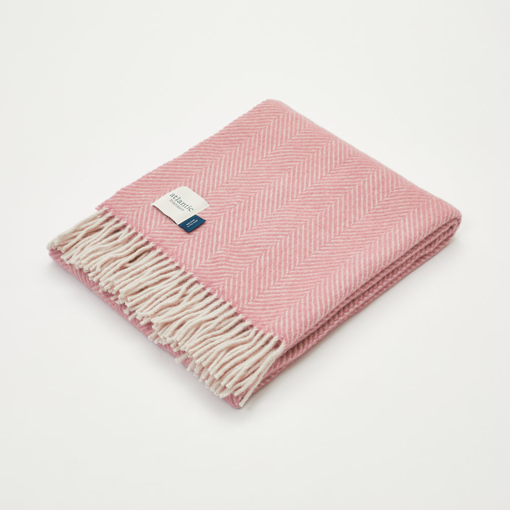 Candy Floss Pink Herringbone Wool Blanket