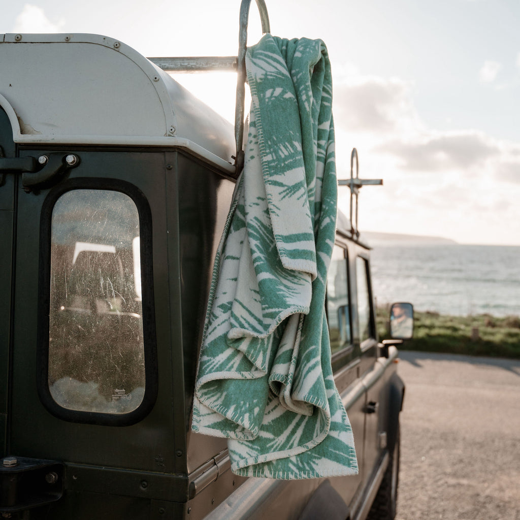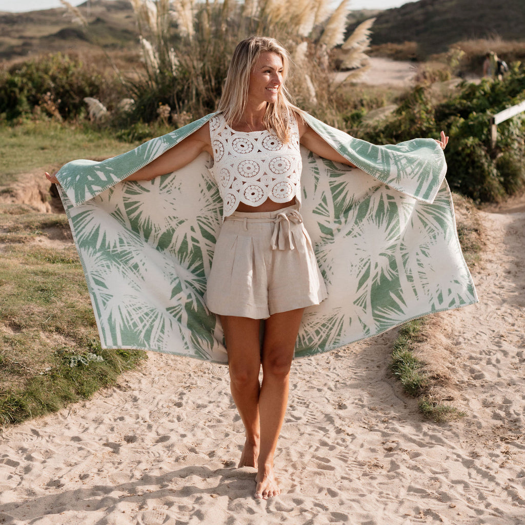 Enjoy an endless summer with our palm-inspired recycled cotton blanket. Adorned with Cornish palms, the kind that mesmerically sway under cloudless blue skies, this fun-filled design will transport you to sunnier climes year-round. Pop it in your van for a road trip along the coast, drape it across your bed for some added style or fold it into your hamper for a spontaneous picnic. Made from recycled materials, this blanket is made to last and ready to rove.