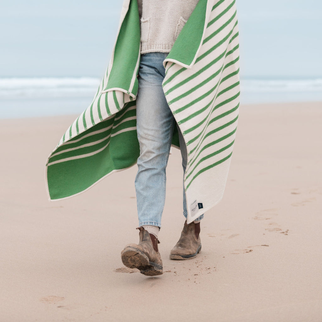 Kelp Green Stripe Recycled Brushed Cotton Blanket