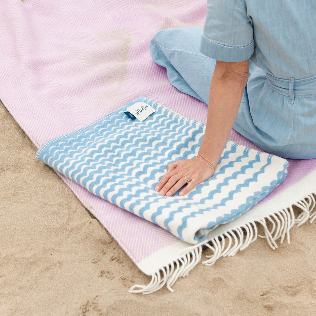 Wrap yourself up in the super-soft folds of our powder blue swell blanket for a touch of home wherever you are. With a jaunty nautical style that immediately conjures up images of gently rolling swells atop Cornish seas, this luxury blanket is as much a statement piece as it is a wondrously cosy companion. Spread it out across your bed, fold it up on the sofa and keep a spare in your car for the type of comfort only an Atlantic Blanket can bring.
