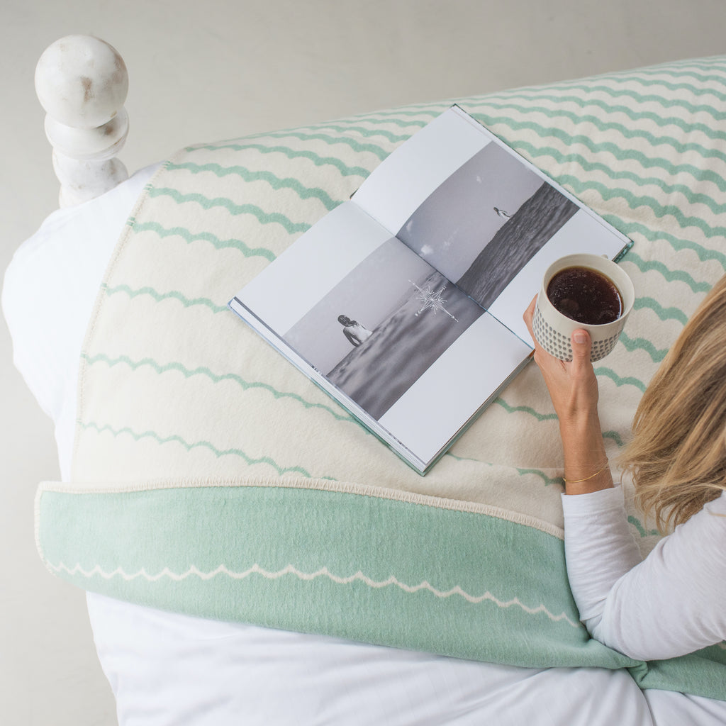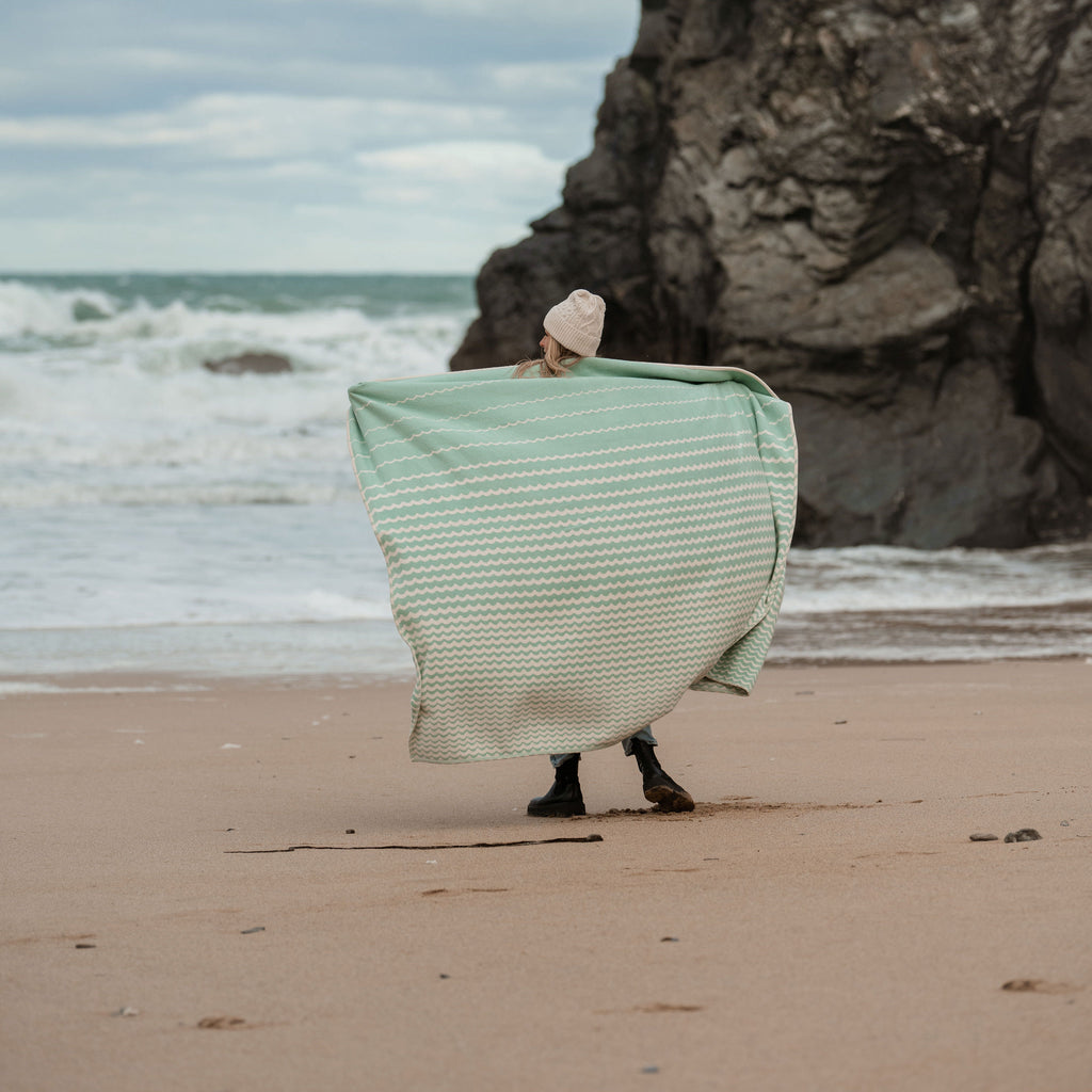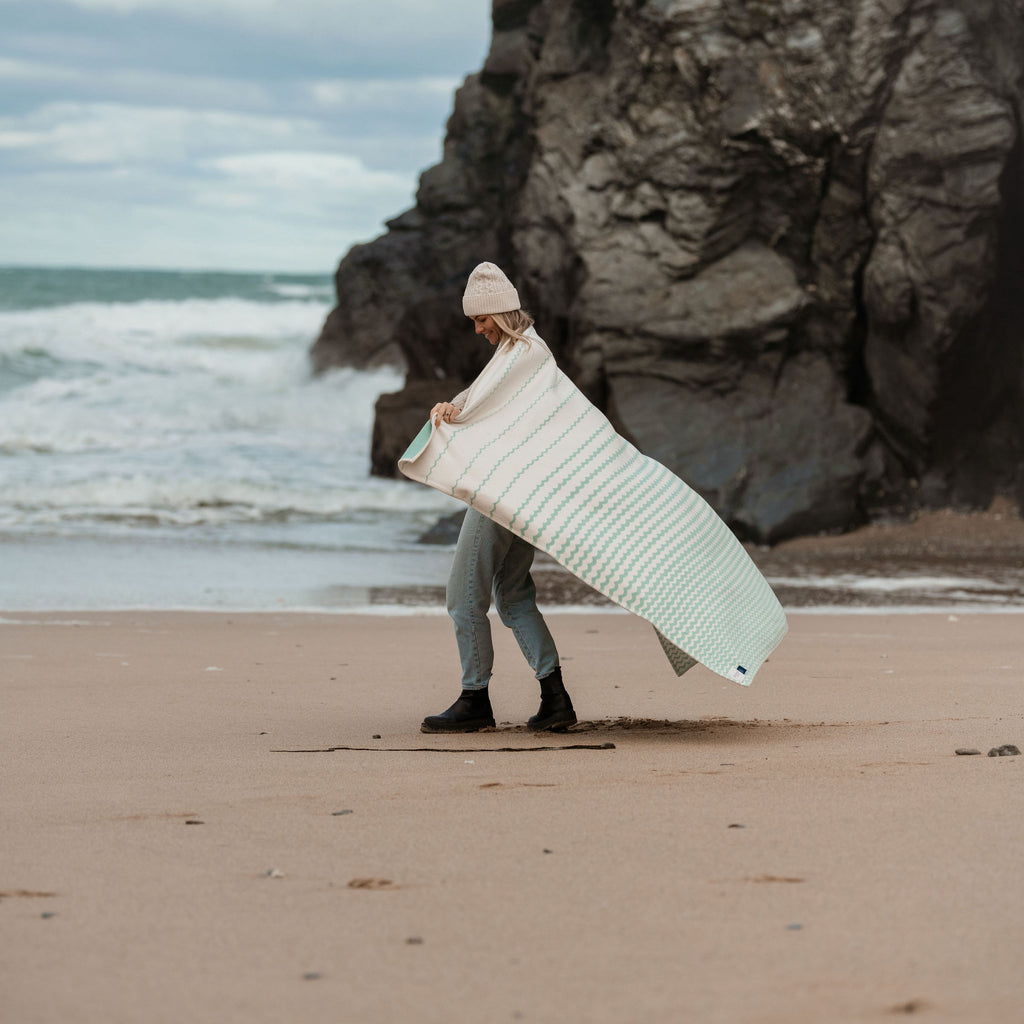 Seafoam Swell Recycled Brushed Cotton Blanket
