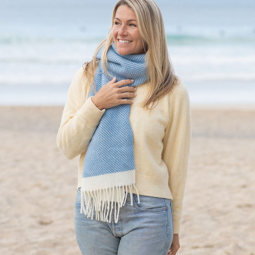 Our wool scarf designed for simple, everyday warmth. Woven in soft herringbone wool, in colours to match our blankets.