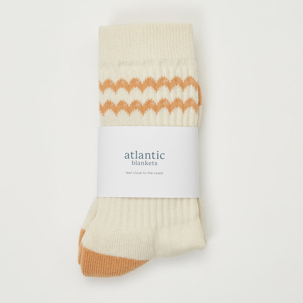 Protect your feet in style with these Golden Sand Wave Cotton Socks. Crafted in England, these socks feature a beautiful teal wave design, perfect for a coastal look. With a soft yet strong weave, you'll be comfortable and supported all day long.