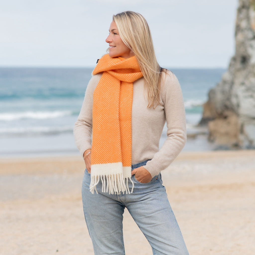 Orange is bold and warming, inspired by Cornish sunsets, adding a striking pop that coordinates beautifully with our blankets.