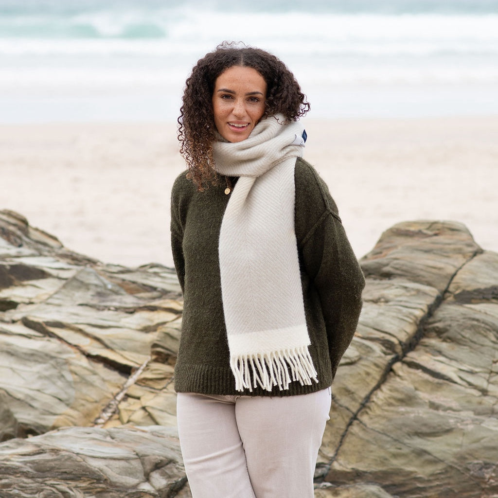 Our wool scarf designed for simple, everyday warmth. Woven in soft herringbone wool, in colours to match our blankets.