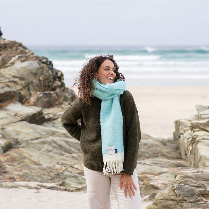 Snug Scarf - Herringbone Wool, Seaglass Mint