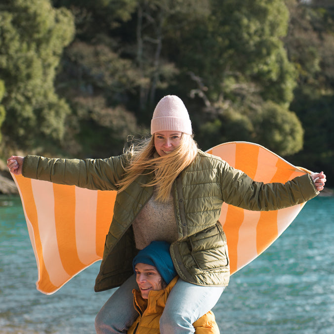 The perfect companion for lazy summer evenings watching tangerine streaks paint sea and sky, our classic sunset stripe recycled cotton blanket is a real favourite. Inspired by the incredible sunsets that light up the Cornish coast, its gorgeous design is not only eye-catching but eco-friendly too, made from recycled materials. Pull a luxurious standard around your shoulders or cuddle up with your beloved in a snuggly large; whether you’re at home or out and about, nothing will beat this little piece of Cornish magic.